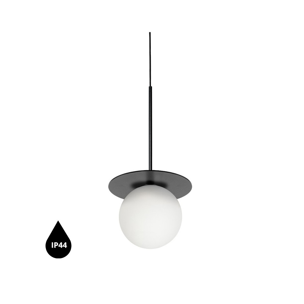 • lampa sufitowa, lampa wisząca • kolor czarny (Jet Black RAL 9005) • materiał wykonania metal, szkło • długość 20cm • szerokość 20cm • wysokość 15,1cm • długość całkowita 130cm • mlecznobiały szklany klosz ⌀15cm • czarna podsufitka ⌀8cm z dyskiem ⌀10cm • czarny dysk ⌀20cm • przewód w oplocie, czarnym, poliestrowym 84,6cm • gwint G9 • max 12W LED • IP44