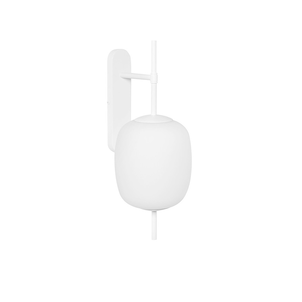 • lampa ścienna, kinkiet • kolor biały (Signal White RAL 9003) • materiał wykonania metal, szkło • długość 23,3cm • szerokość 17,5cm • wysokość 45,6cm • mlecznobiały szklany klosz ⌀17,5cm x 22,4cm • mocowanie lakierowane w kolorze białym strukturalnym • gwint G9 • max 12W LED • IP20