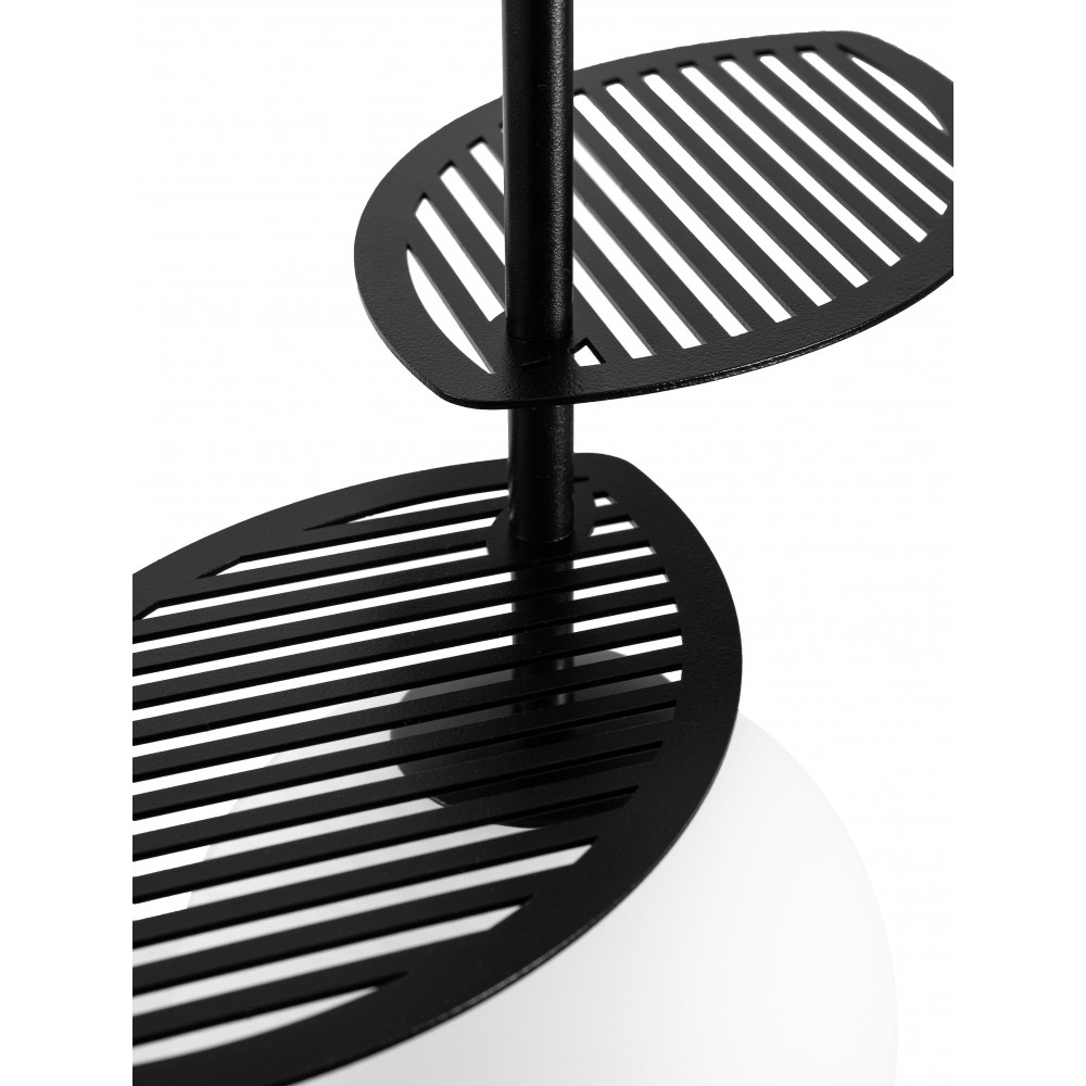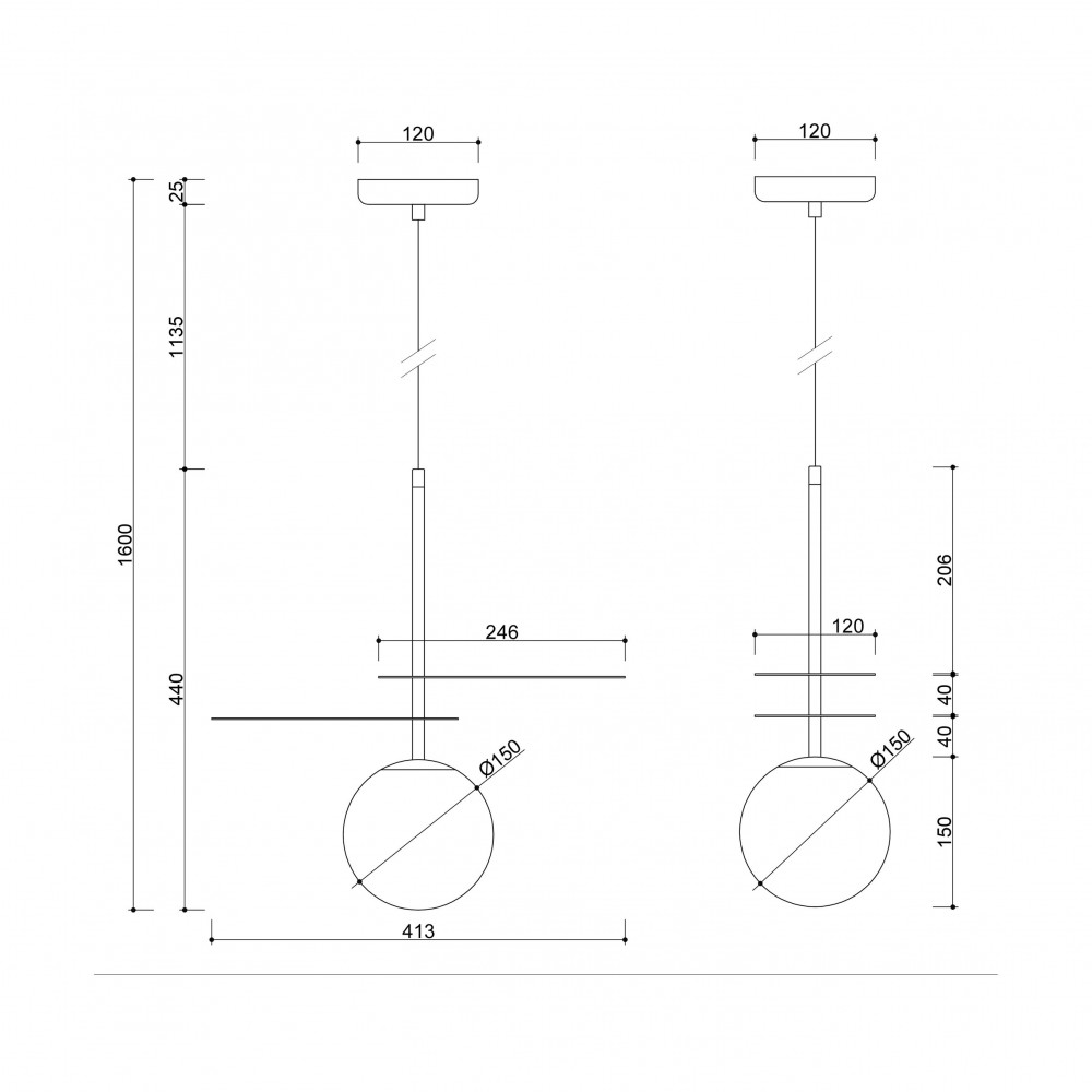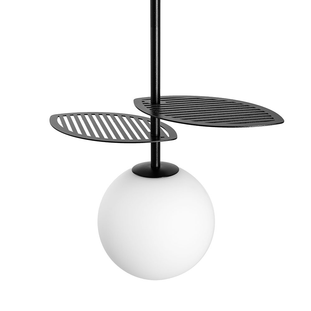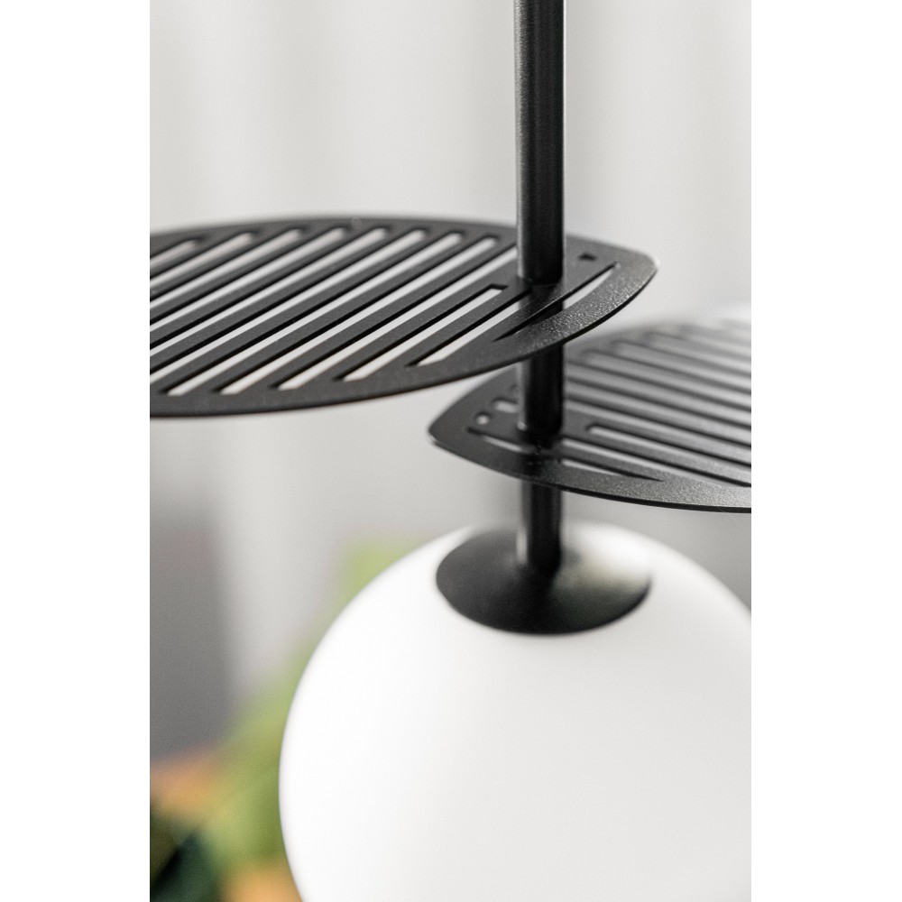 • sufitowa lampa wisząca • metal / szkło • biały / czarny • długość całkowita 160cm • szklany klosz o średnicy 15cm w kolorze białym matowym • maskownica sufitowa lakierowana w kolorze czarnym strukturalnym • oplot czarny poliestrowy • przewód dwużyłowy 2 X 0.75mm2 • gwint G9 • max 12W