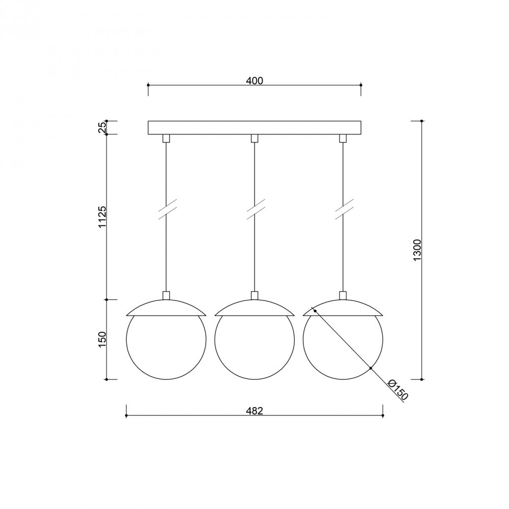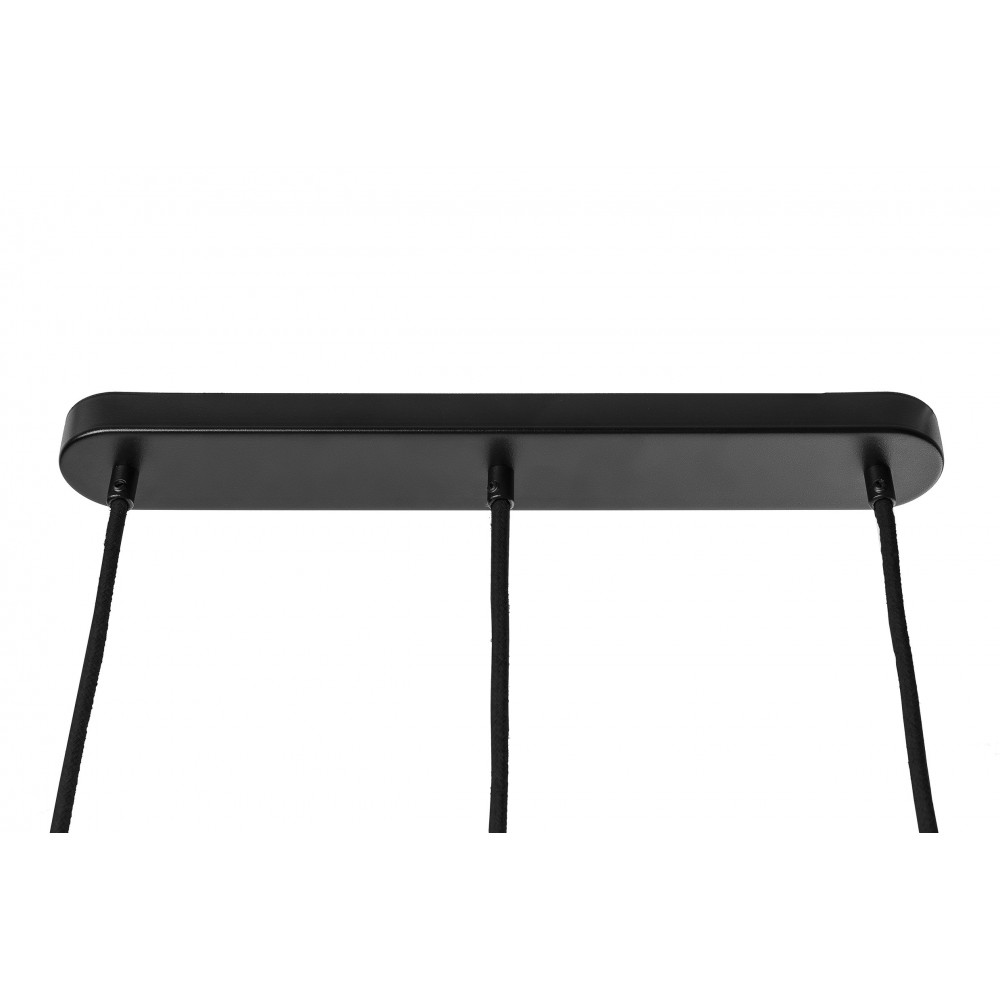 • lampa sufitowa, lampa wisząca • kolor czarny (Jet Black RAL 9005) • materiał wykonania metal, szkło • długość 48,2cm • szerokość 15cm • wysokość 15cm • długość całkowita 130cm • trzy mlecznobiałe szklane klosze ⌀15cm • mocowanie lakierowane w kolorze czarnym strukturalnym • 3x przewód w oplocie, czarnym, poliestrowym 112,5cm • gwint G9 • max 3x12W LED • IP20