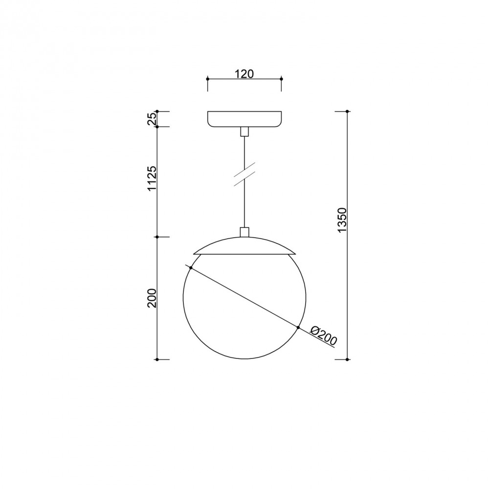 - Nowoczesna lampa wisząca z kulistym kloszem o średnicy 20 cm.