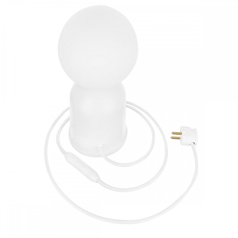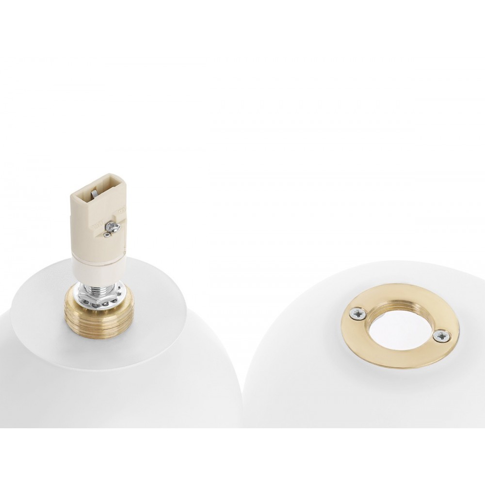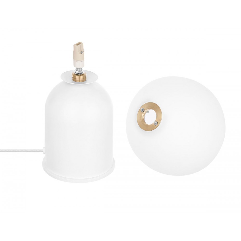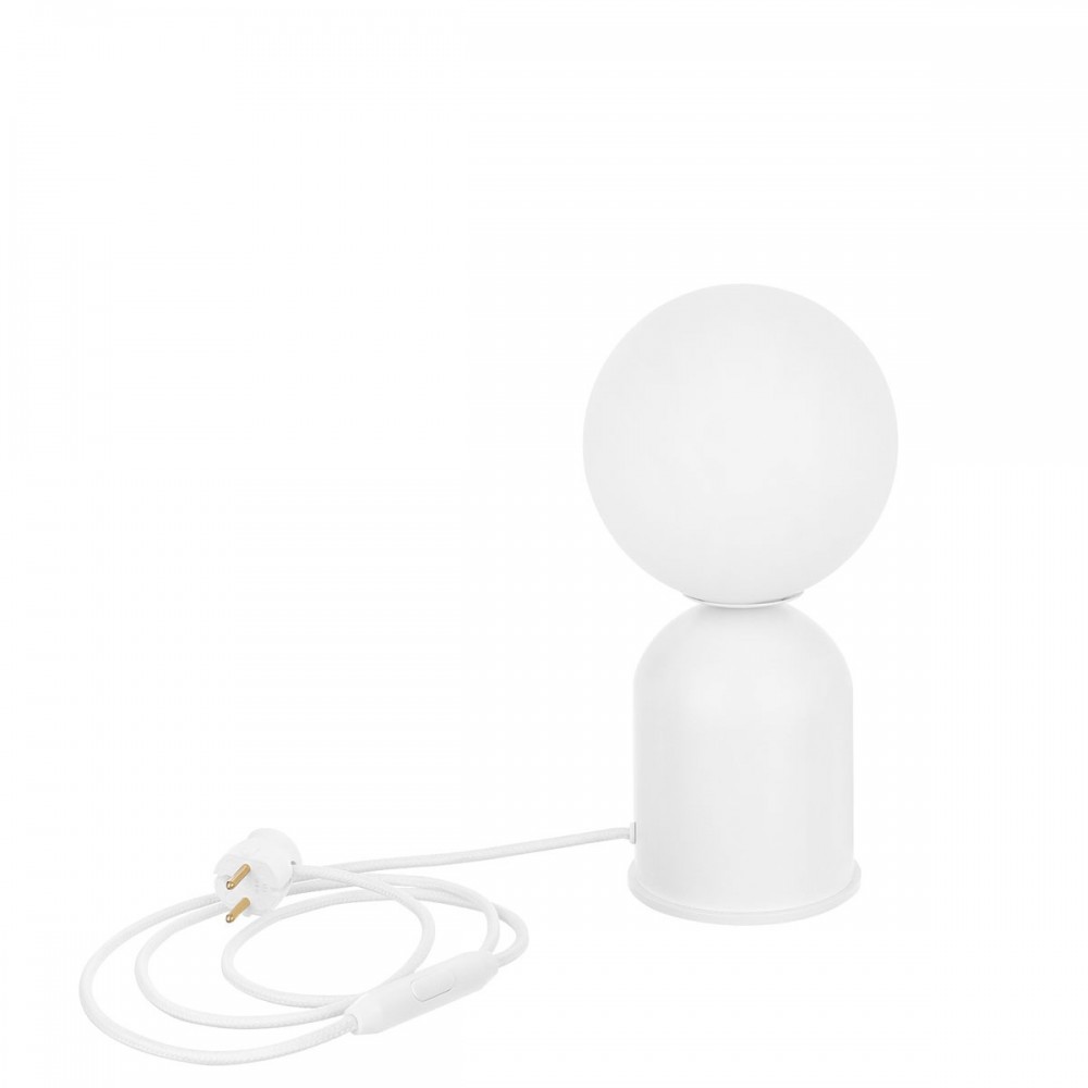 • lampa stołowa • kolor biały (Signal White RAL 9003) • materiał wykonania metal, szkło • długość 15cm • szerokość 15cm • wysokość 29cm • mlecznobiały szklany klosz ⌀15cm • podstawa lakierowana w kolorze białym strukturalnym • przewód w oplocie, białym, poliestrowym 150cm • biała wtyczka i przełącznik • gwint G9 • max 12W LED • IP20