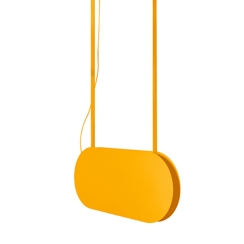 • lampa sufitowa, lampa wisząca • kolor melonowy (Melon Yellow RAL 1028) • materiał wykonania metal, aluminium • długość 80cm • szerokość 5,2cm • wysokość 35cm • długość całkowita 180cm • melonowy kabel w oplocie poliestrowym 145cm • 2x taśma materiałowa 145cm • melonowa, metalowa maskownica sufitowa 60,3cm • wbudowany LED • moc 24W • IP20