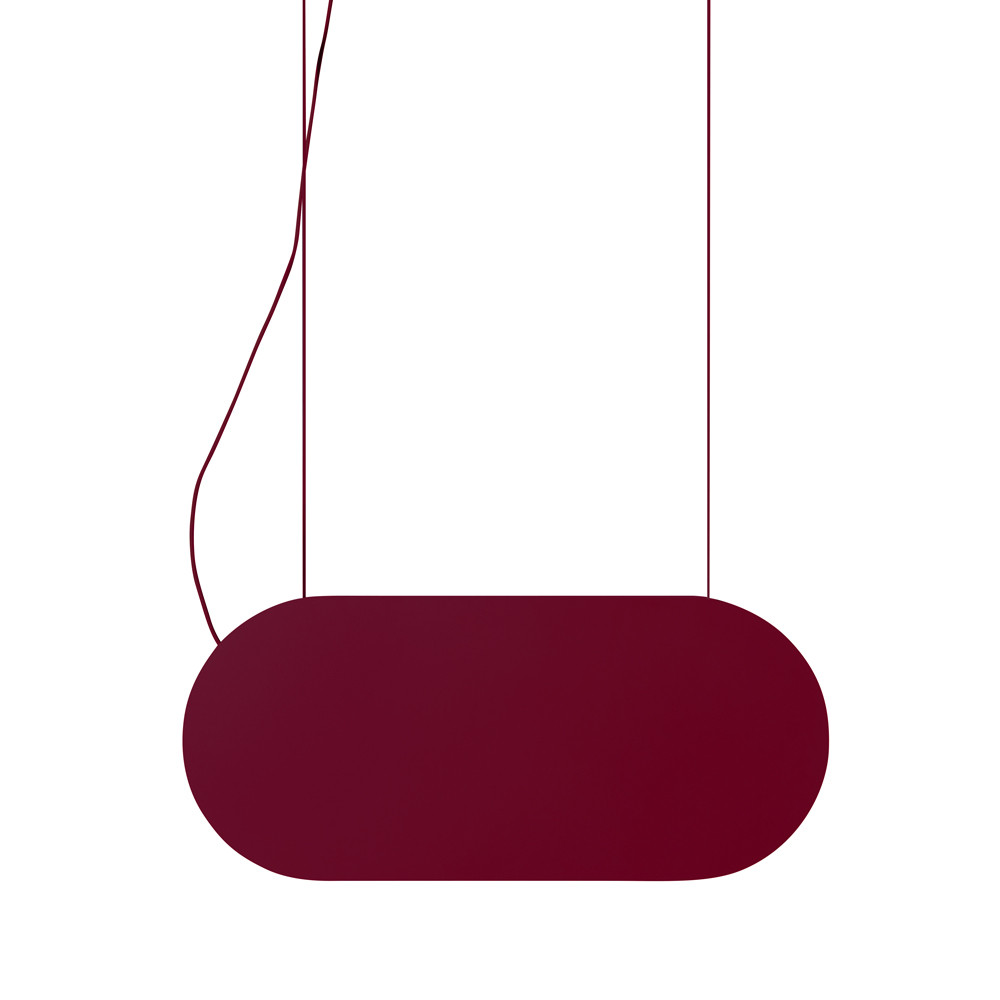 • lampa sufitowa, lampa wisząca • kolor burgundowy (Purple Red RAL 3004) • materiał wykonania metal, aluminium • długość 80cm • szerokość 5,2cm • wysokość 35cm • długość całkowita 180cm • kabel w oplocie poliestrowym 145cm • 2x taśma materiałowa 145cm • burgundowa, metalowa maskownica sufitowa 60,3cm • wbudowany LED • moc 24W • IP20