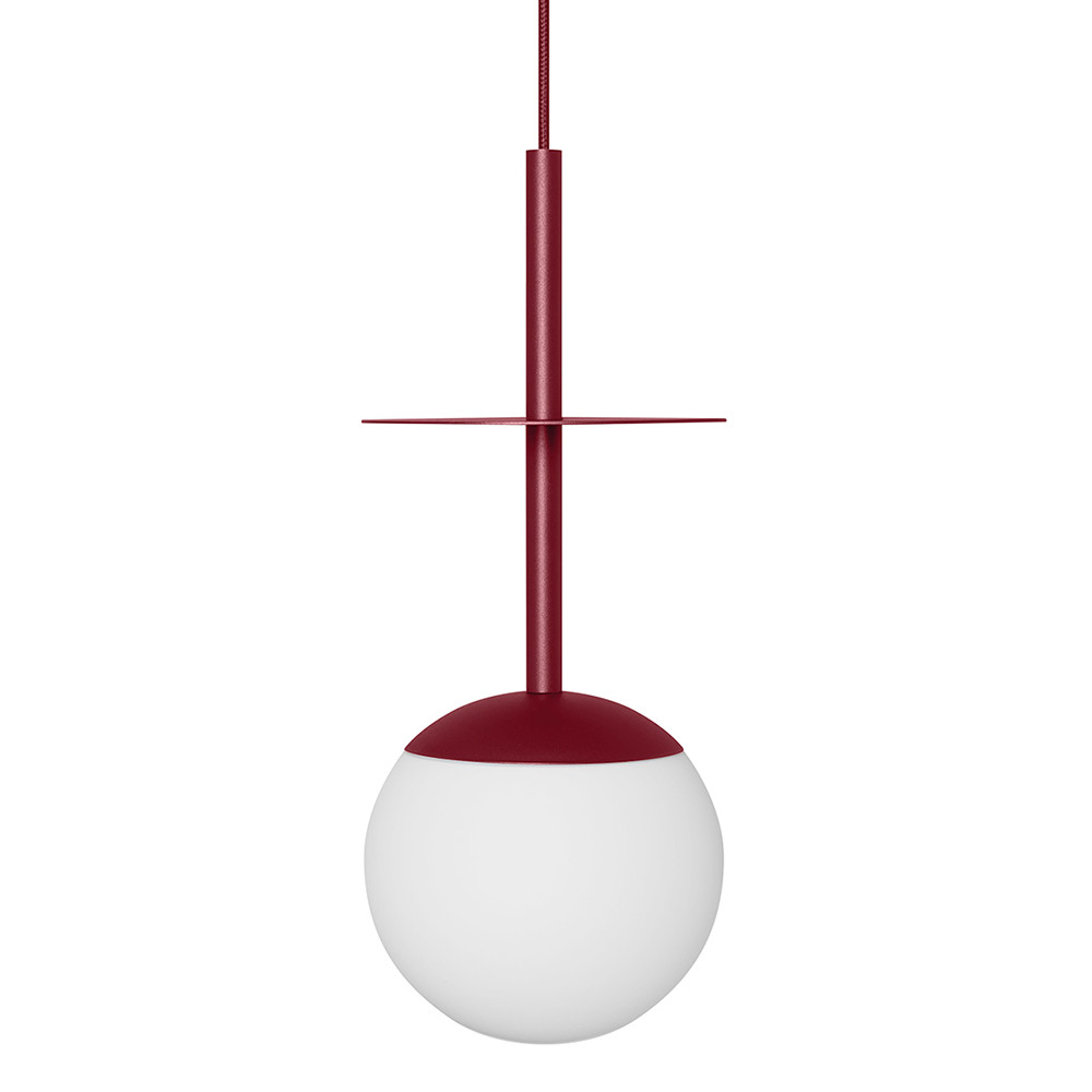 • lampa sufitowa, lampa wisząca • materiał wykonania metal, szkło • kolor burgundowy (Purple Red RAL 3004) • długość 160cm • długość przewodu 110cm • szklany klosz w kolorze białym matowym fi 20cm • maskownica sufitowa lakierowana w kolorze burgundowym strukturalnym fi 12cm • metalowy krążek fi 20cm • przewód dwużyłowy 2 X 0.75mm2 w oplocie burgundowym poliestrowym • gwint E27 • max 15W • IP20