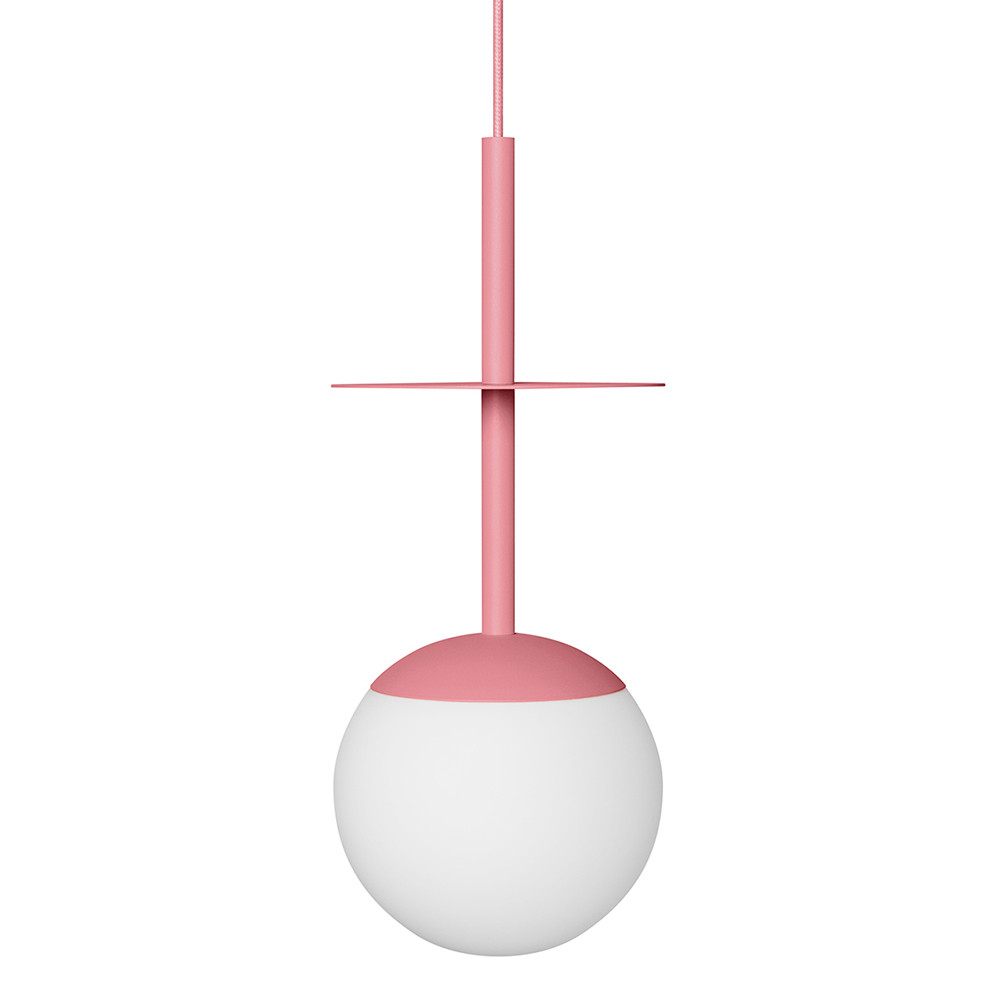 • lampa sufitowa, lampa wisząca • materiał wykonania metal, szkło • kolor różowy (Antique Pink RAL 3014) • długość 160cm • długość przewodu 110cm • szklany klosz w kolorze białym matowym fi 20cm • maskownica sufitowa lakierowana w kolorze różowym strukturalnym fi 12cm • metalowy krążek fi 20cm • przewód dwużyłowy 2 X 0.75mm2 w oplocie różowym poliestrowym • gwint E27 • max 15W • IP20