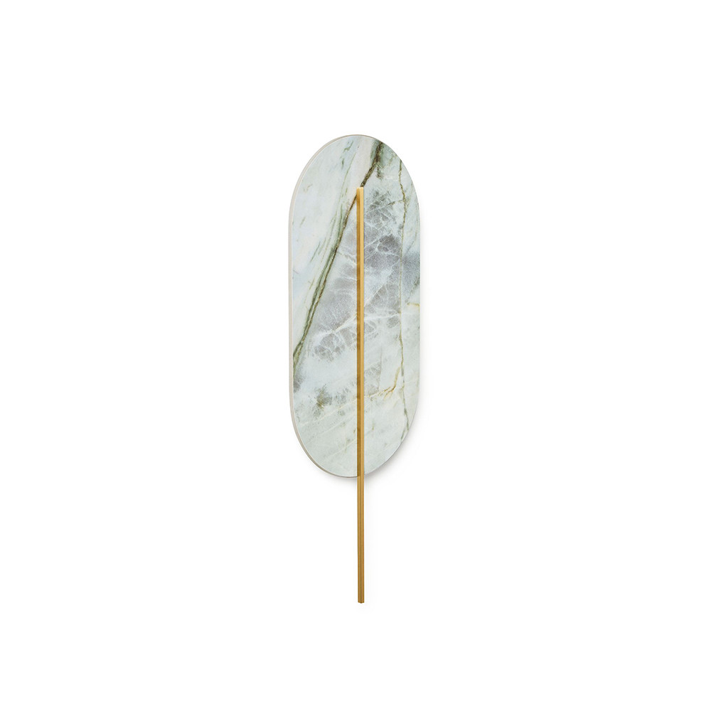 • lampa ścienna, kinkiet • kolor gresu zielony (Abstract Green Gres) • kolor pręta do wyboru: biały, czarny, melon, mosiądz • materiał wykonania metal, mosiądz, gres szkliwiony • długość 3,8cm • szerokość 21cm • 56,6cm • klosz z mosiężnym elementem (mocowany za pomocą magnesów do maskownicy ściennej) • biała metalowa maskownica 8x8cm • gwint 2xG9 • max 2x12W • IP20
