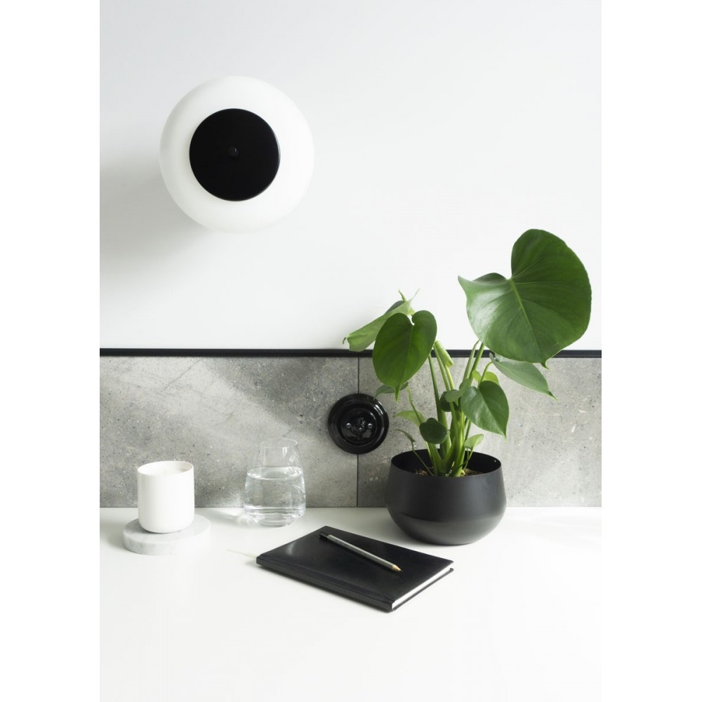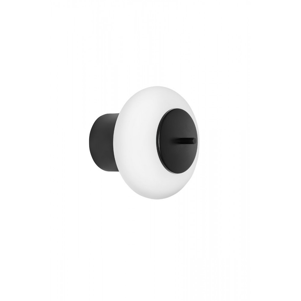 • lampa ścienna, kinkiet • metal / szkło • czarny / biały • głębokość 20,5cm • średnica 22cm • szklany klosz w kolorze białym matowym fi 22cm • mocowanie ścienne lakierowane w kolorze czarnym strukturalnym fi 12cm • przewód dwużyłowy 2 X 0.75mm2 • gwint E27 • max 15W