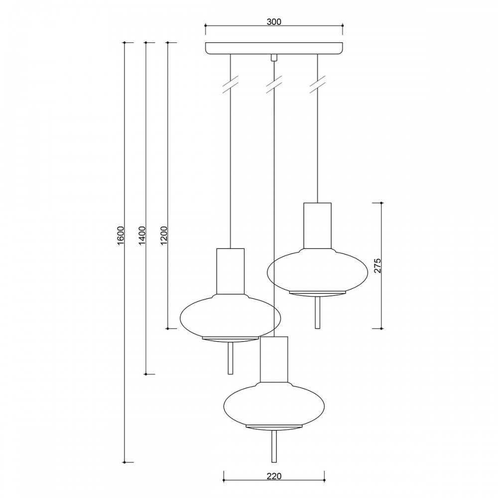 • lampa sufitowa, plafon • metal / szkło • biały • długość całkowita 160cm • szerokość 30cm • 3x szklany klosz w kolorze białym matowym fi 22cm • maskownica sufitowa lakierowana w kolorze białym strukturalnym fi 30cm • przewód dwużyłowy 2 X 0.75mm2 w białym poliestrowym oplocie o długości 92cm, 112cm, 132cm • gwint E27 • max 3x15W